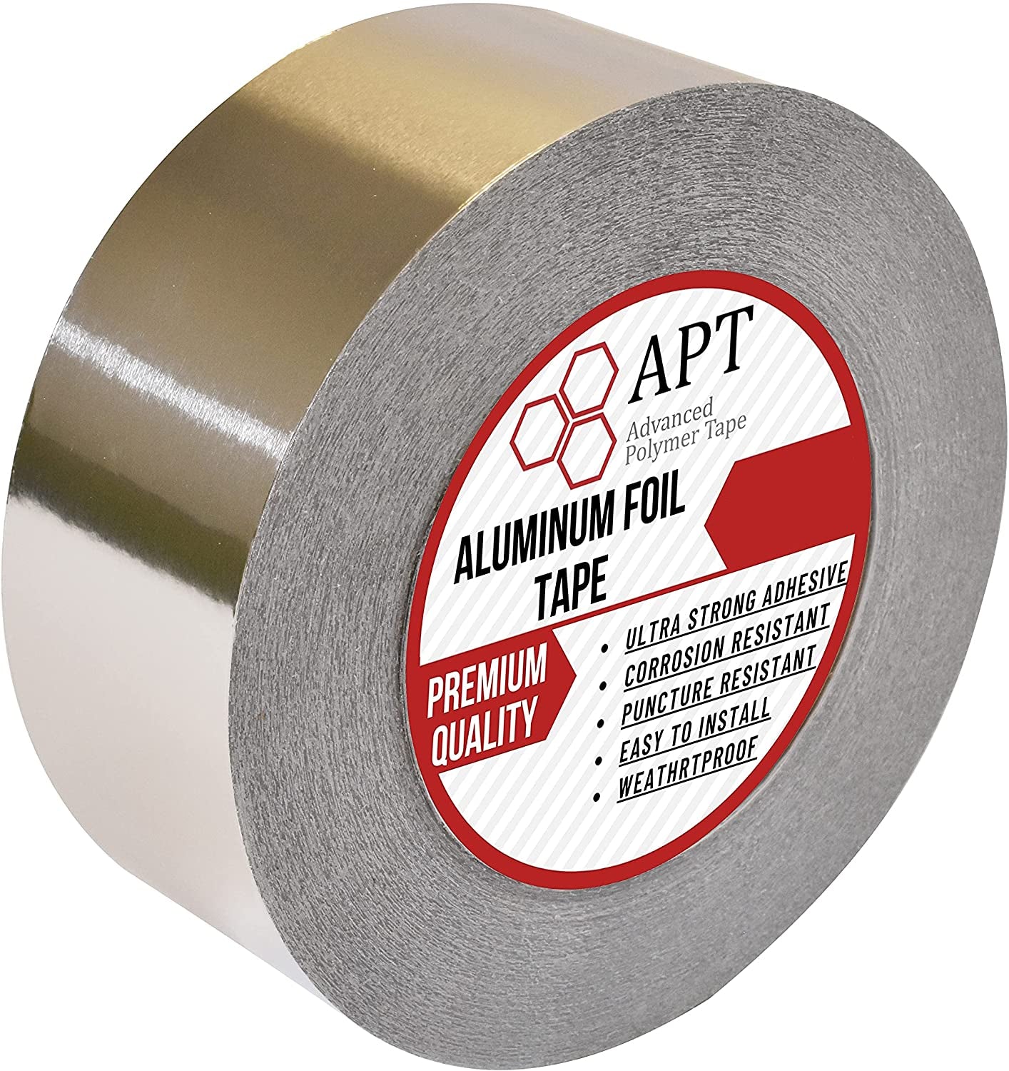 APT Aluminum Foil Tape comes with a high solvent acrylic adhesive, protected by an easy-release silicone release paper. It combines the versatility of aluminum and the weather-resistant sealing power of adhesive tape, and you have an extremely versatile product — aluminum foil tape. Moisture and chemical resistance Thermal conductivity Flame resistance Heat and light reflectance Weatherability